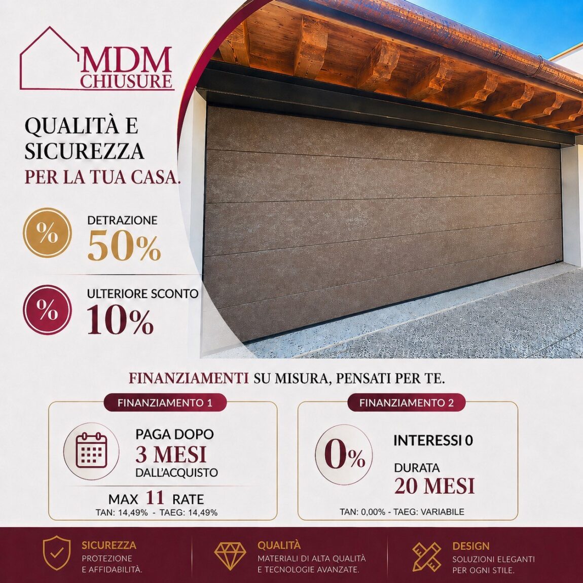 MDM Chiusure SRL nasce con l’obiettivo di offrire al cliente il massimo in termini di consulenza, professionalità, servizio e assistenza. Grazie a un’esperienza pluridecennale nel settore delle chiusure tecniche civili e industriali, l’azienda è in grado di accompagnare ogni cliente nella scelta più adatta, affrontando con competenza qualsiasi esigenza o situazione. La continua ricerca di soluzioni innovative, unite a tecnologia, prestazioni e sicurezza, rappresenta il cuore del nostro lavoro. Siamo organizzati per rispondere con precisione a richieste tecniche, estetiche e operative, anche le più specifiche. Dedizione, perseveranza e passione guidano ogni nostro intervento, perché il nostro obiettivo resta sempre lo stesso: garantire la piena soddisfazione di ogni cliente.